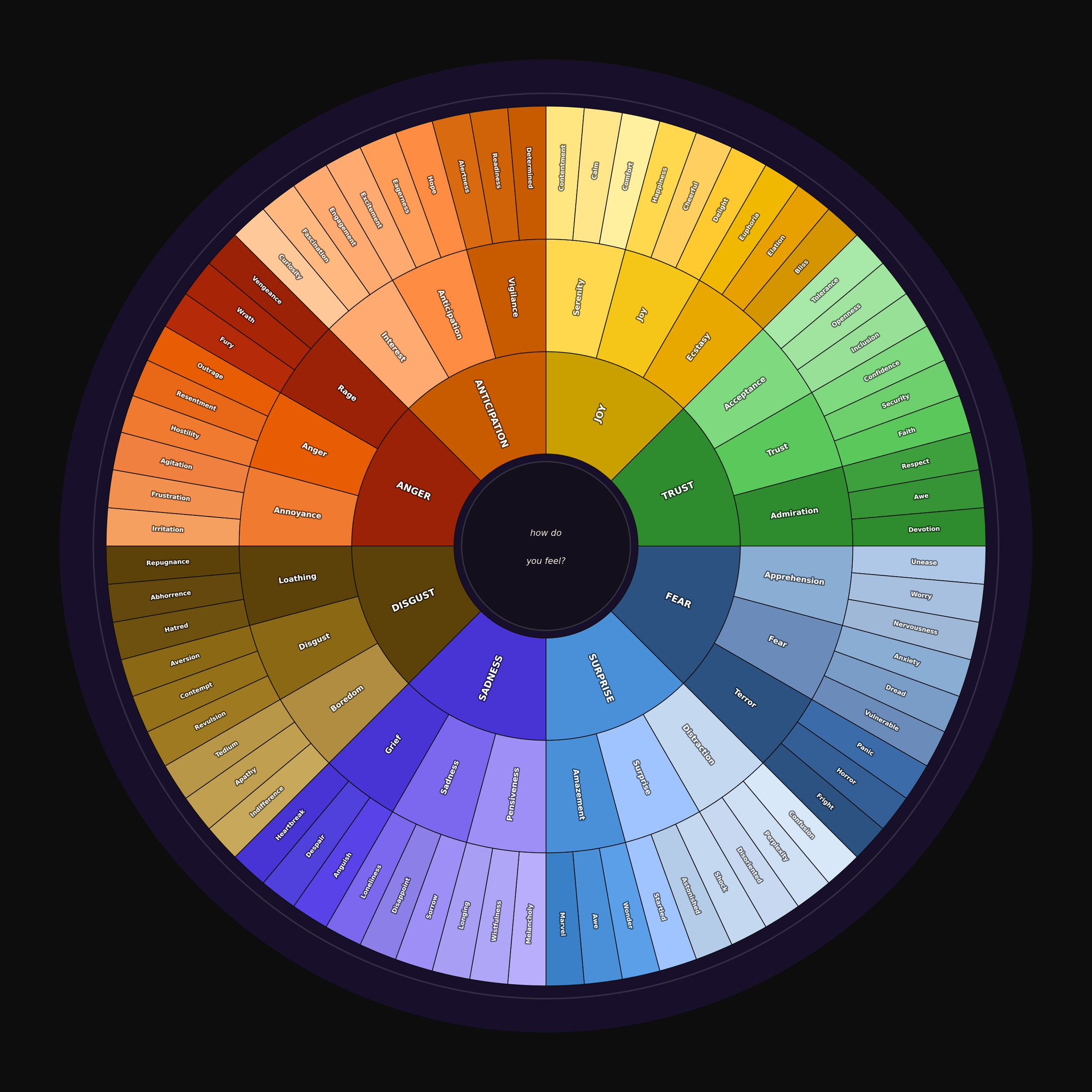 A beautifully designed interactive emotion wheel that helps you pinpoint exactly how you're feeling — one step at a time.
